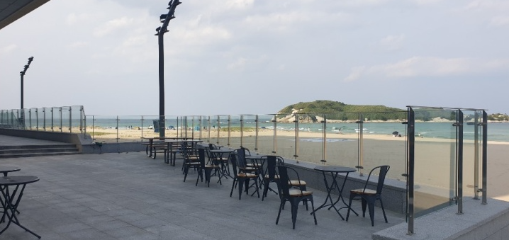 카페에서 바다 앞까지 테이블과 의지를 설치했더라고요.