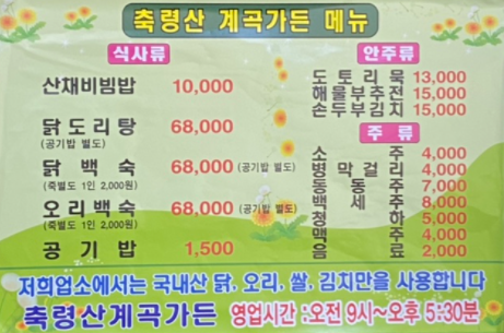 맛난 백숙 먹을 수 있어요.