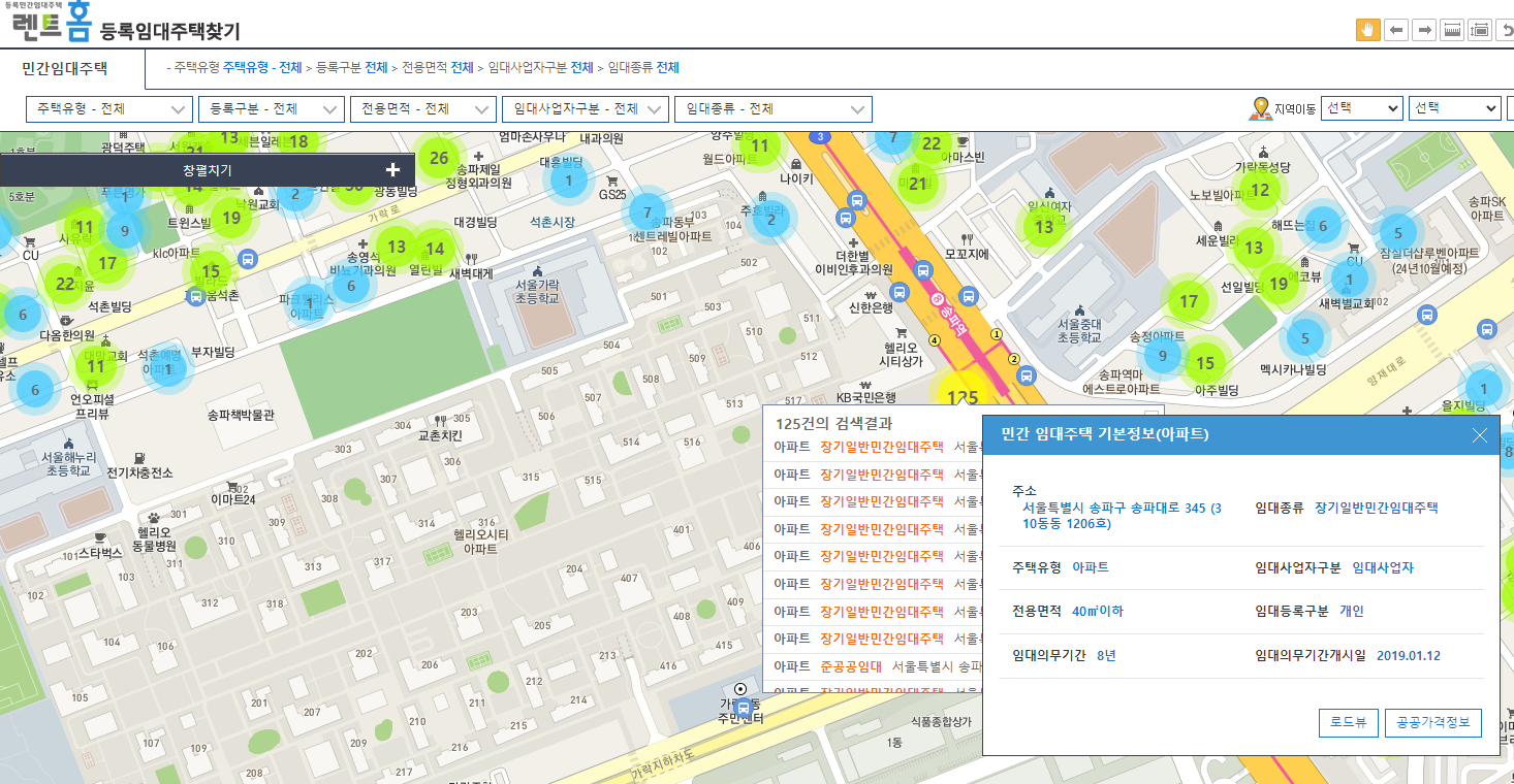 매물의 정확한 주소와, 임대종류, 임대사업자구분, 전용면적, 임대등록구분,