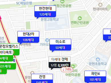 지도를 보면서 관심있는 아파트의 정보가 궁금하면