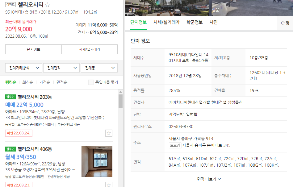 위에 언급한 헬리오시티를 기준으로 살펴볼께요.
