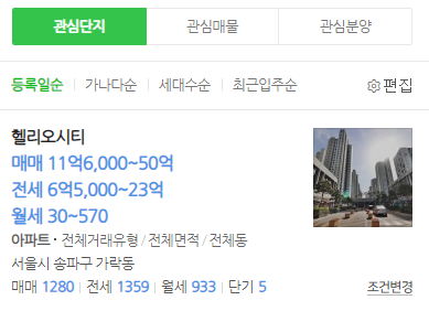 매매/전세를 한눈에 같이 볼 수 있어 좋은것 같아요.