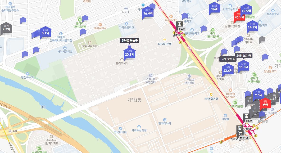 위에 언급한 헬리오시티를 기준으로 살펴볼께요.