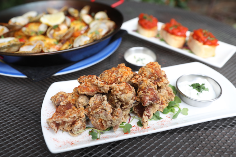 해산물 빠에야, 직접 담근 올리브, 먹물옷 입은 오징어 튀김 등