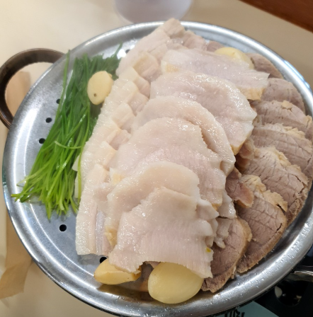 항정살로 만든 수육보쌈을 판매하고 있어요.