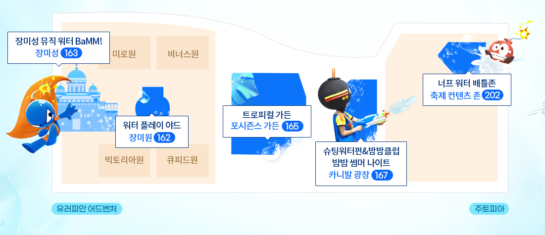 물총, 우비, 수건, 여벌옷, 여름샌들, 방수팩, 시원한 물,