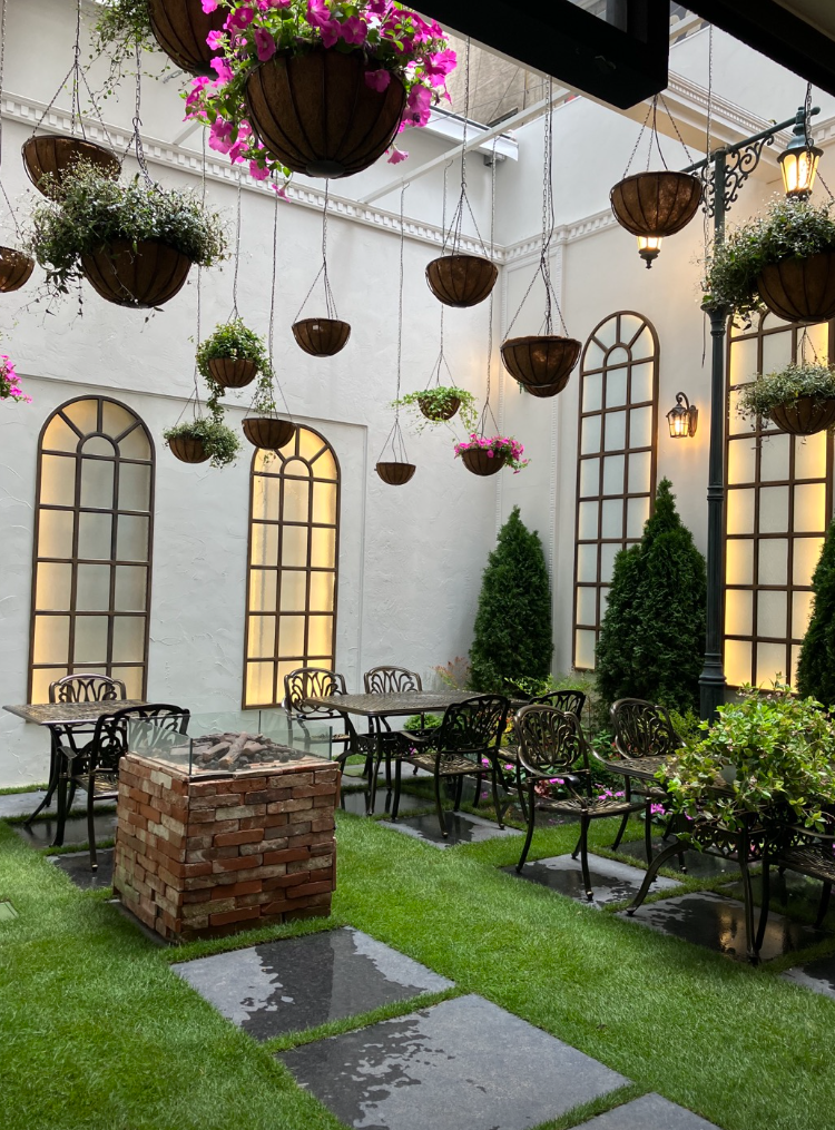 꽃과 나무가 가득한 인테리어에서