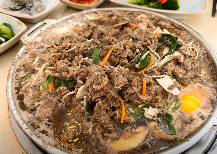 특히 대표 메뉴인 등심 불고기는 달콤한 육수에 얇게 썬 소고기와 야채를 넣어 끓여내며, 갈비찜과 낙지불고기전골도 인기 있습니다. 정갈한 반찬과 함께 제공되어 한 끼 식사로 만족도가 높습니다.
