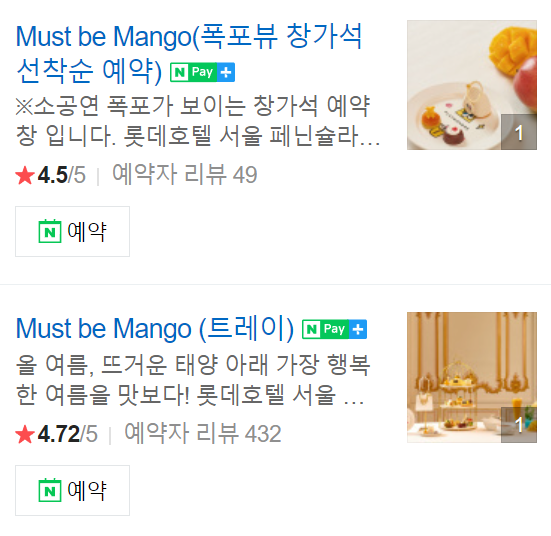 지금 망고 애프터눈 티세트가 진행되고 있어요.