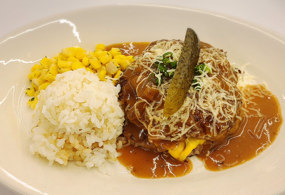 두툼한 햄버거 패티를 그레이비소스와 함께 먹는 스타일입니다.