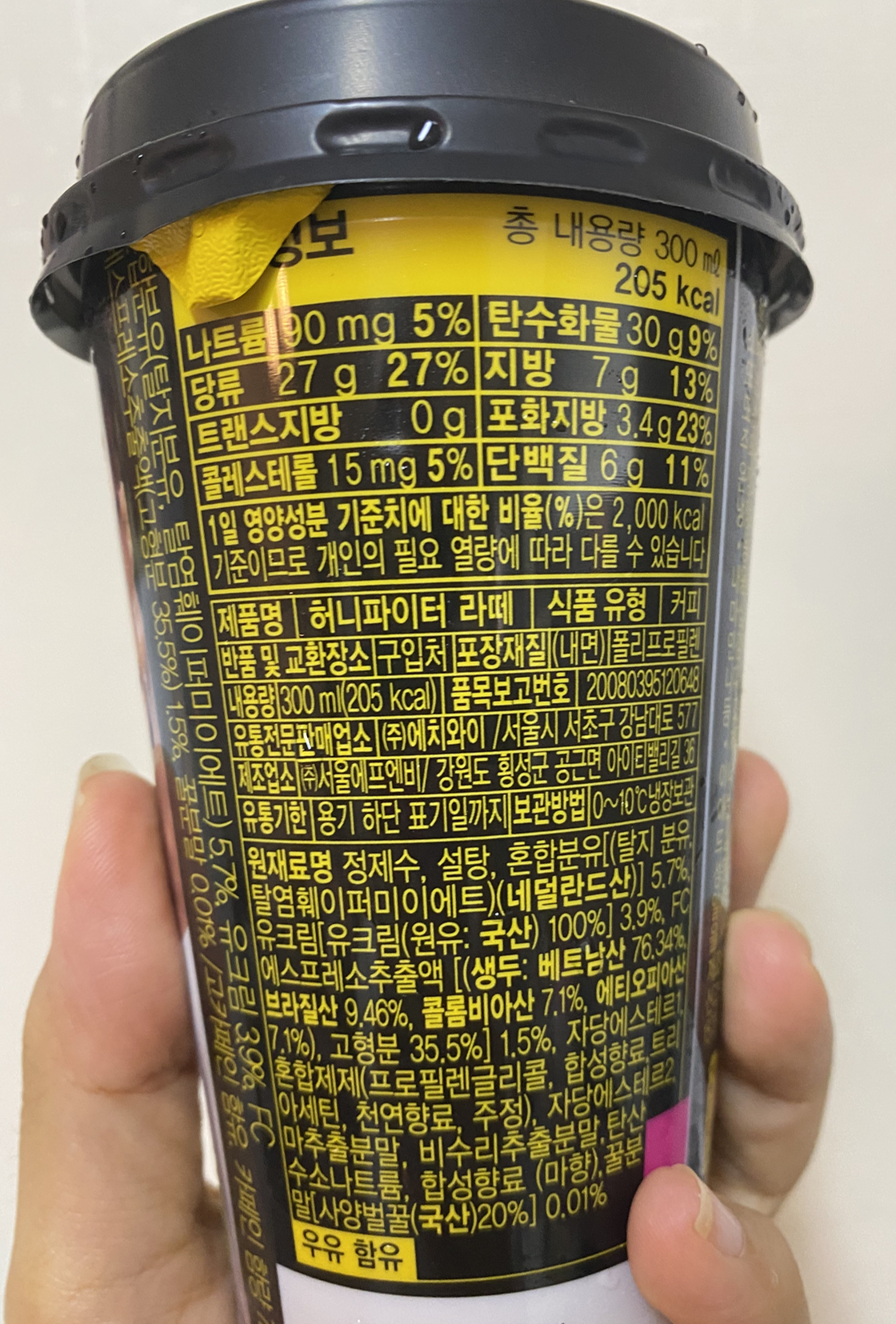 설탕, 혼합분유, 에스프레소추출액, 마추출분말, 꿀분말