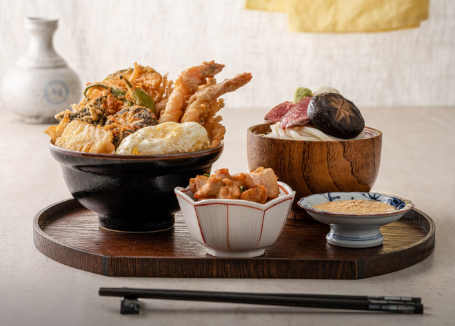 메뉴: 텐동, 붓카게우동, 스테이크동, 사케동 등