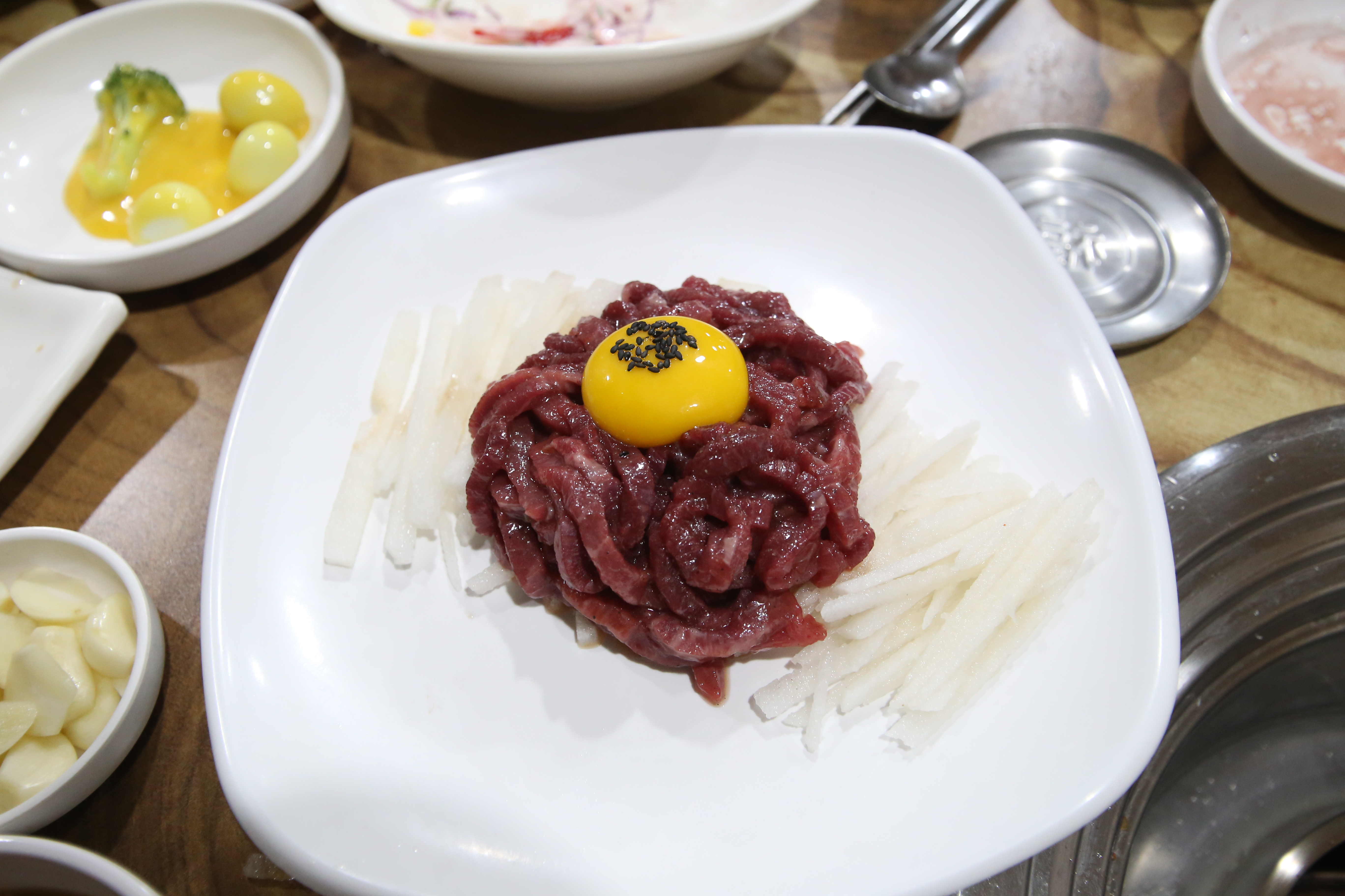 한우 2인분, 소갈비살 1인분, 육회 중을 주문했어요.