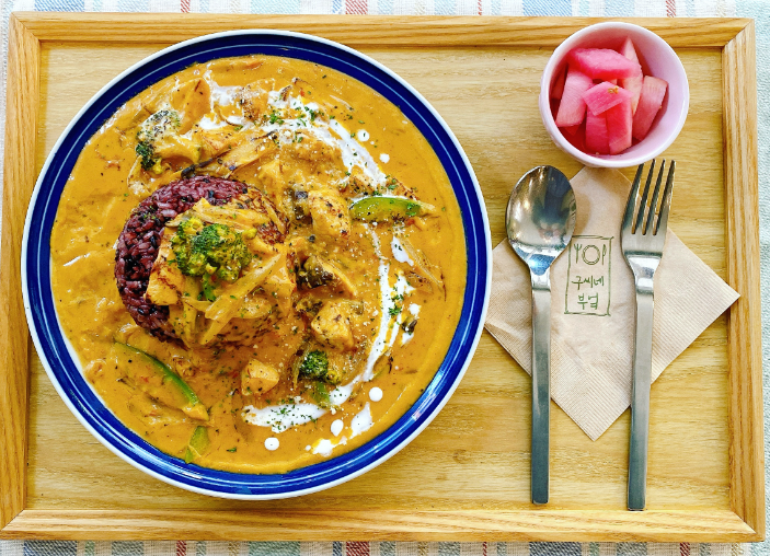 비법소스로 카레라이스, 부드러운 리조또를 판매하고 있어요.